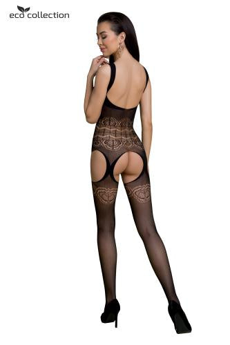 Net catsuit with suspenders and crotchless design Made from recycled materials. Available in one - universal size.
